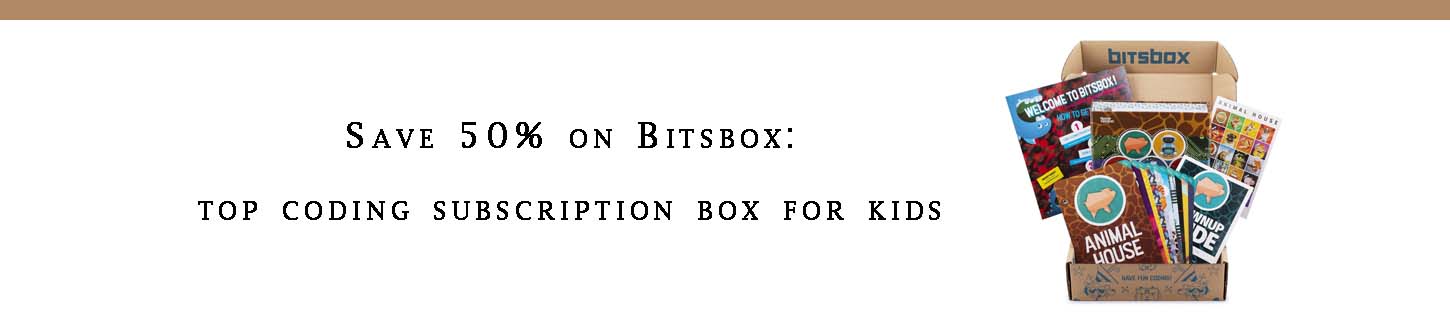 Customers’ first subscription box savings, 50% off on Bitsbox: top coding subscription box for kids>